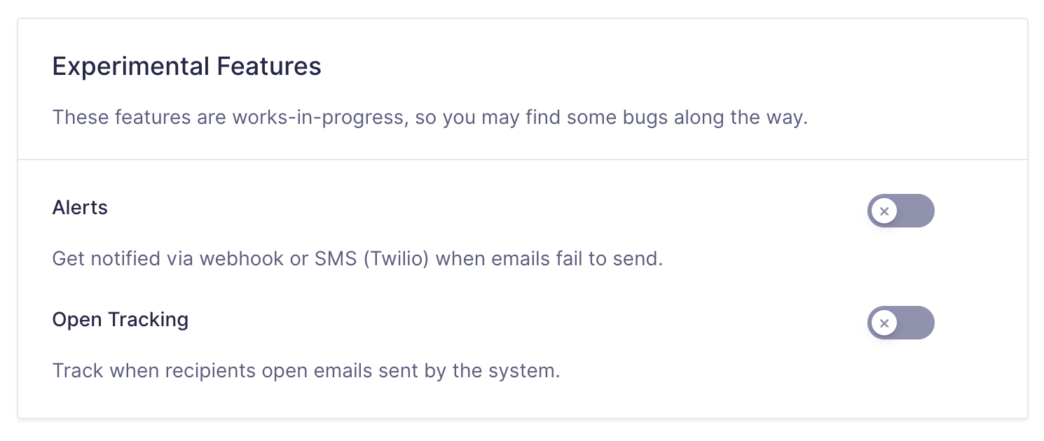 Experimental Features | Manage Experimental Features. Refer to this article for more information on experiments in Gravity SMTP. |