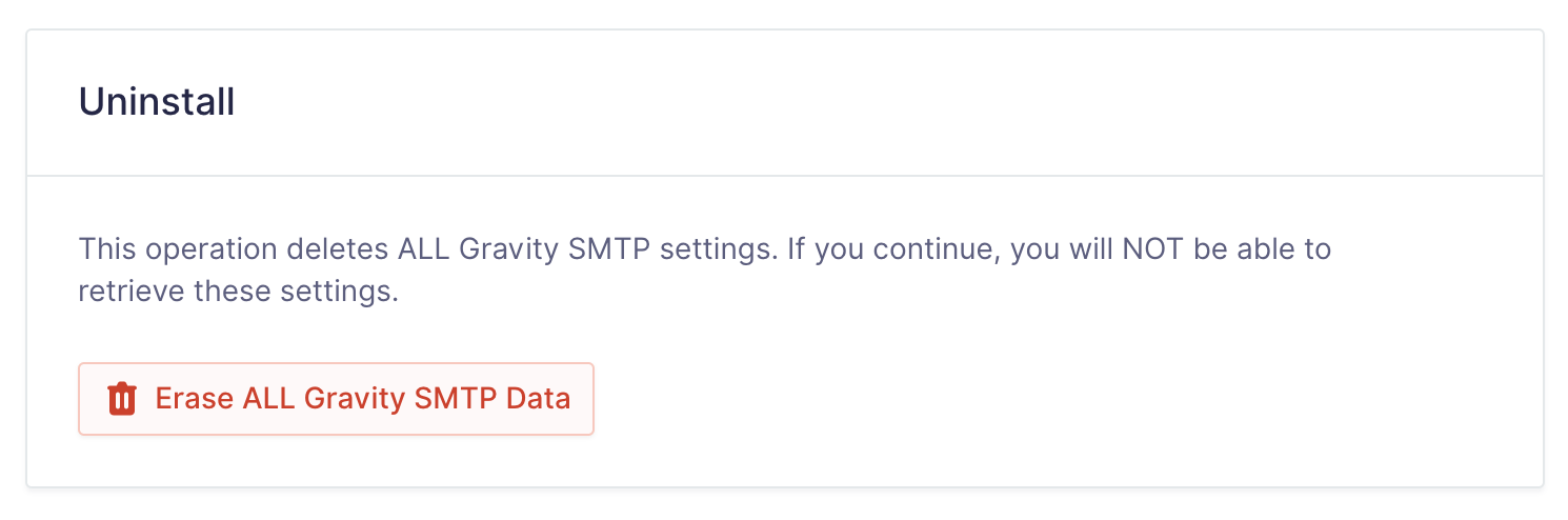 Uninstall | Uninstall Gravity SMTP. |